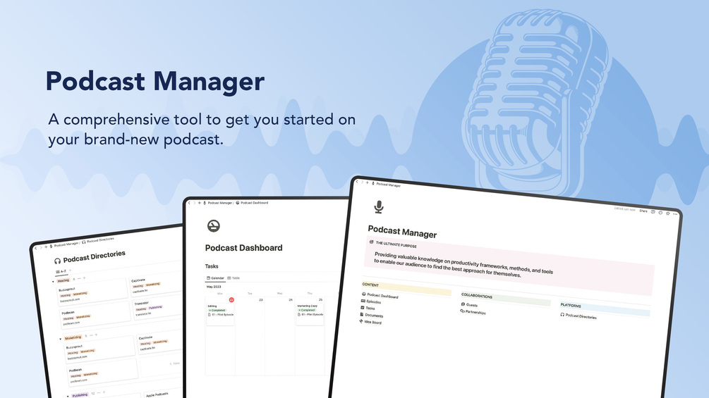 Unlock the full potential of your podcast with the Podcast Manager Template and focus on delivering captivating content to your audience.