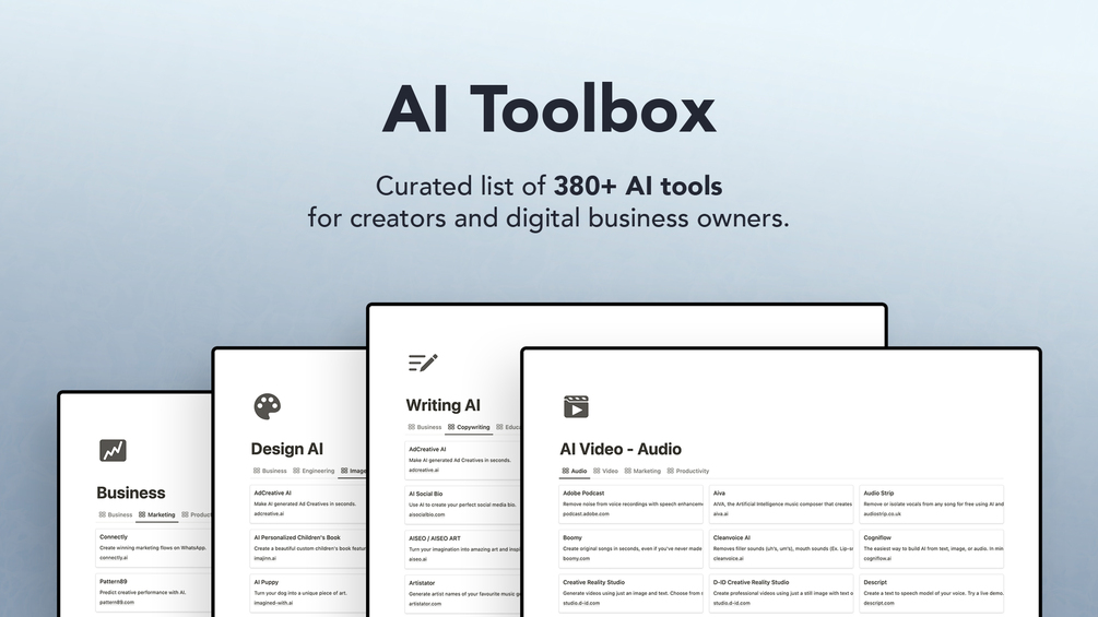The AI Toolbox is a curated list of best AI tools for creators & digital business owners.